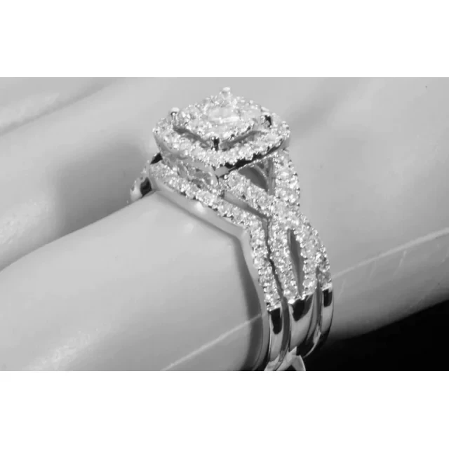 • 10K WHITE GOLD 1.50 CARAT WOMENS REAL DIAMOND ENGAGEMENT RING WEDDING BANDS SET
