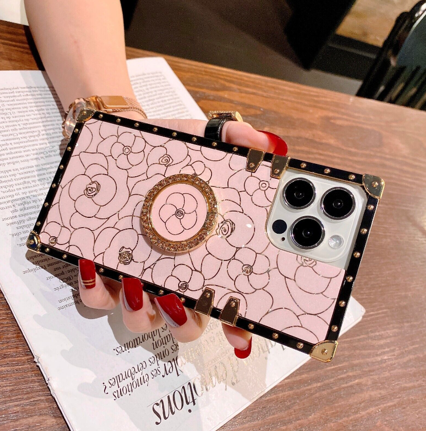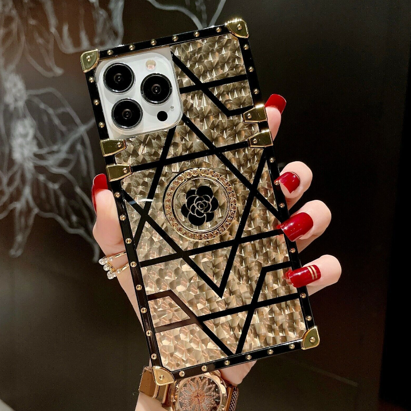 Bling Square Leopard Flower Phone Case For iPhone 14 13 12 11 Pro Max XR 8 7 SE