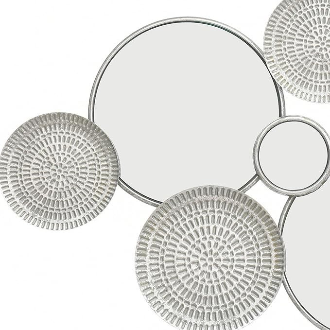 WXFKLDJ Metal Wall Decor with Multi Circle Plates Mirror, Large Modern Wall Art Sculpture Decor for Living Room, Office, Bedroom, Home Decor Gold,Silver